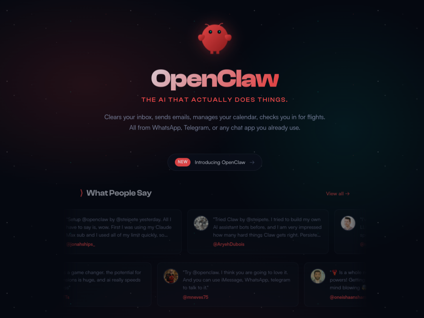 The OpenClaw logo and main heading create a strong focal point with clear visual weight